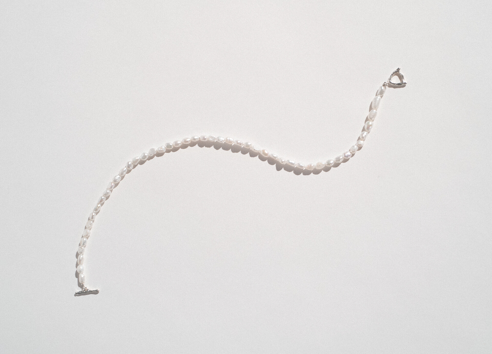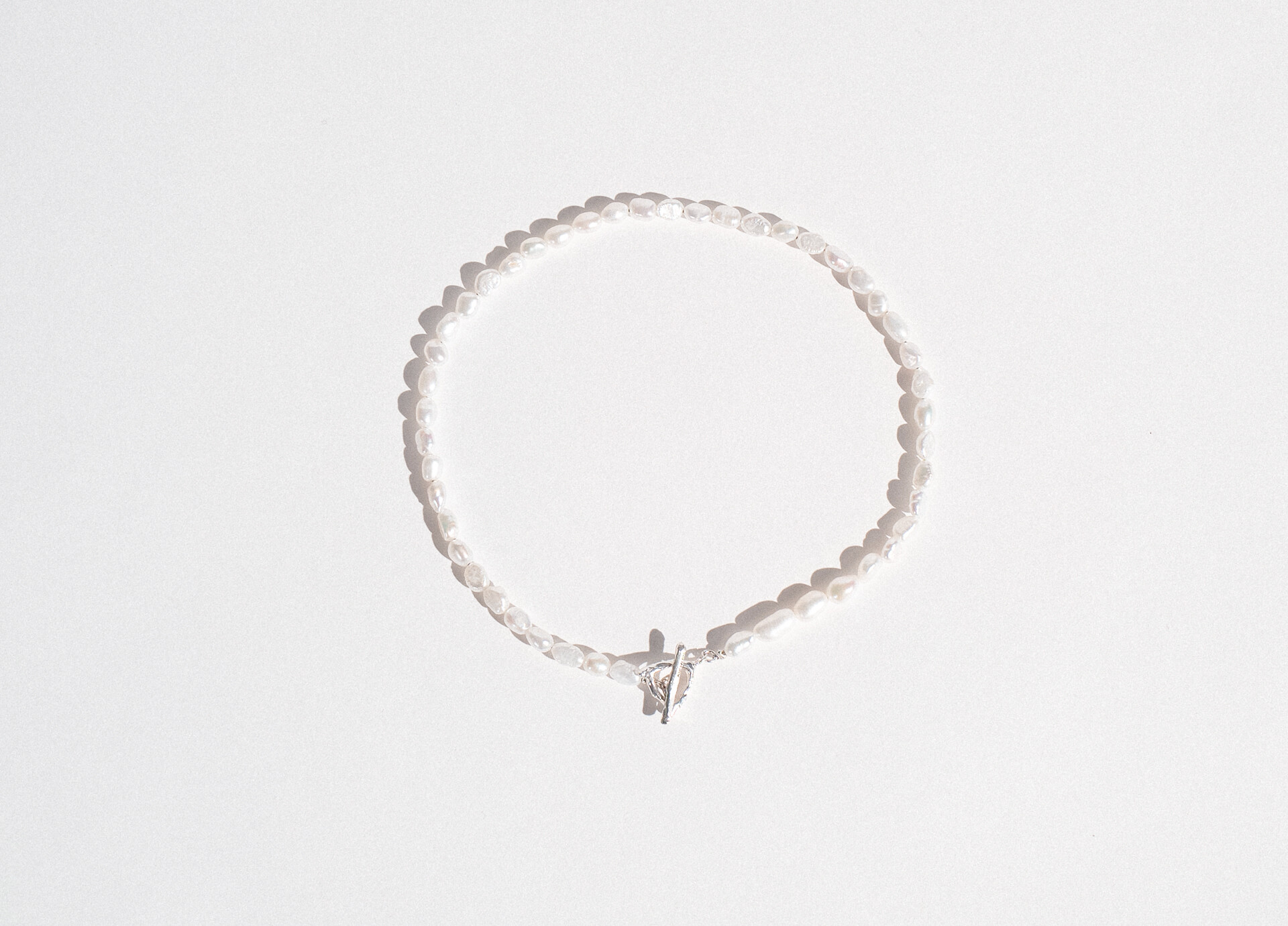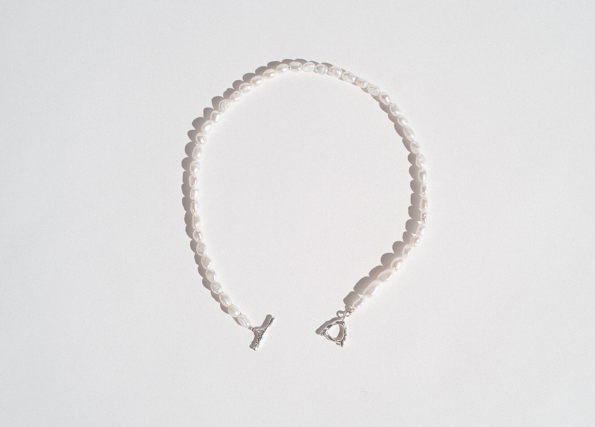 깔끔하지못한 담수진주와 러프한 느낌의 T고리가 더해졌지만 단정하고 캐주얼한 느낌의 주얼리가 탄생되는 재미있는 목걸이 입니다.