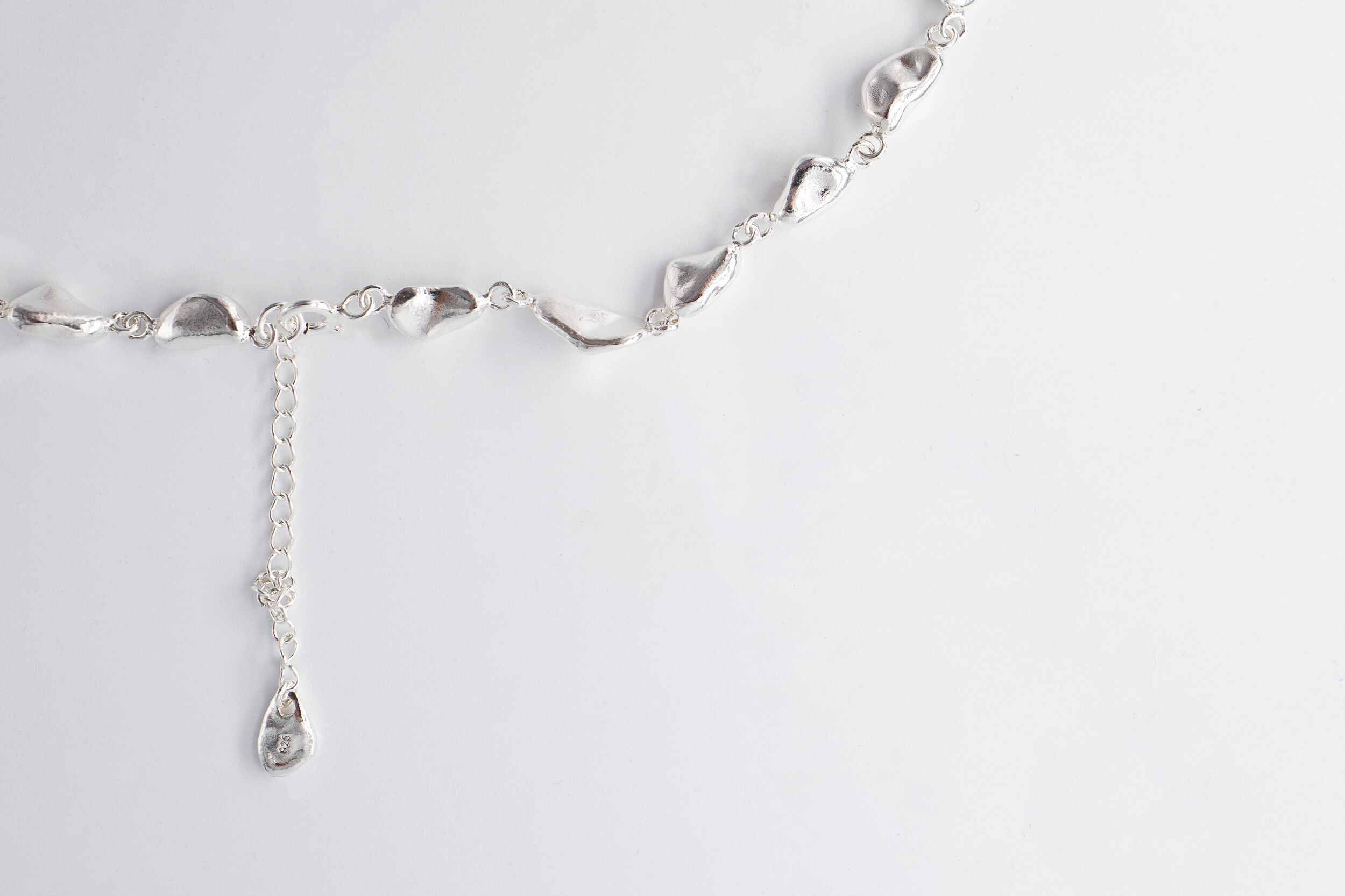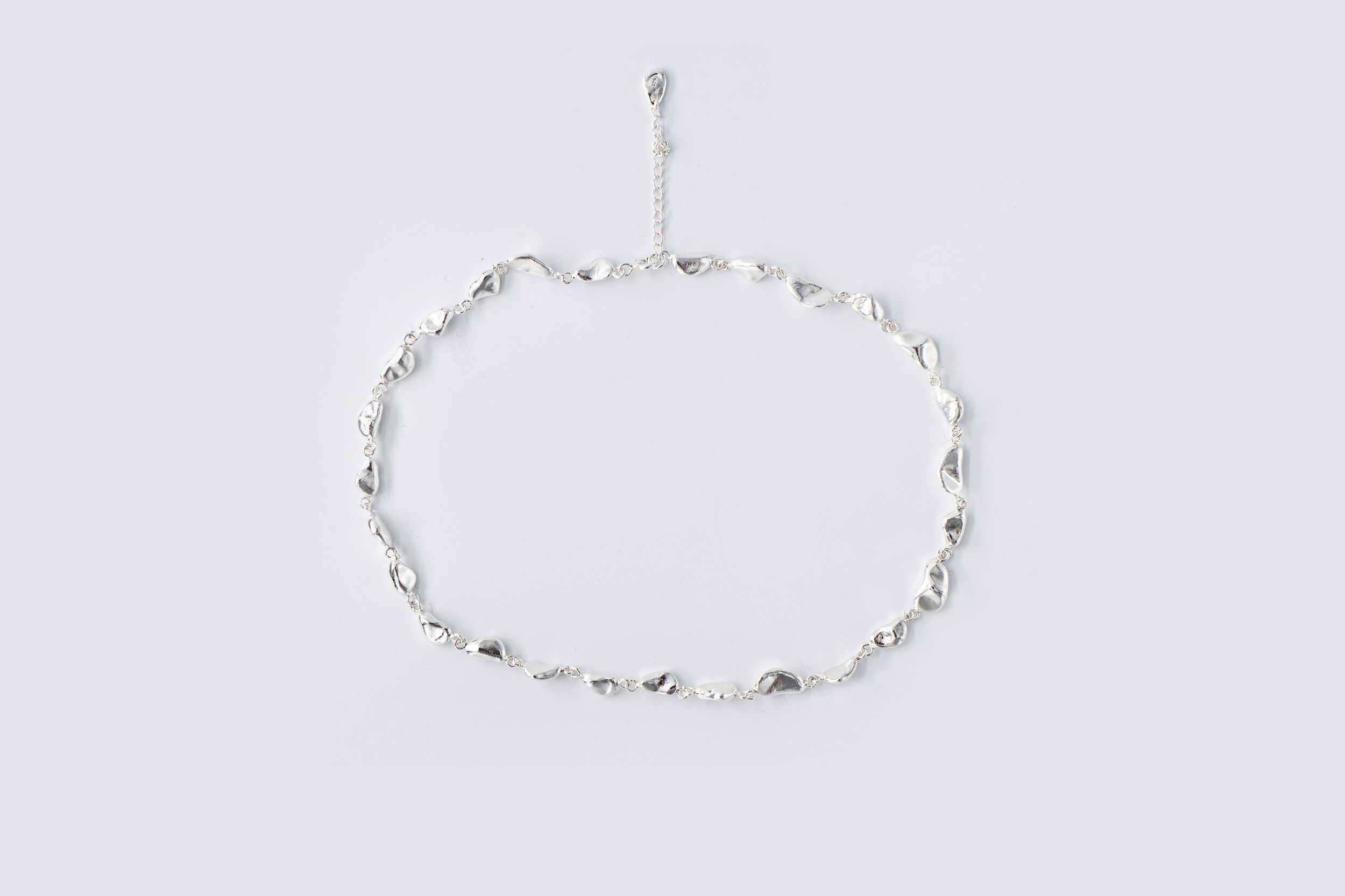 유기적인 형태의 각기다른 유닛들을 연결하여, 세련되지만 따듯한 느낌의 necklace입니다.